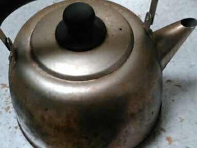こちらのやかんを(ネットで拝借した知恵をもとに)重曹を駆使して(ぬりたくって擦りました